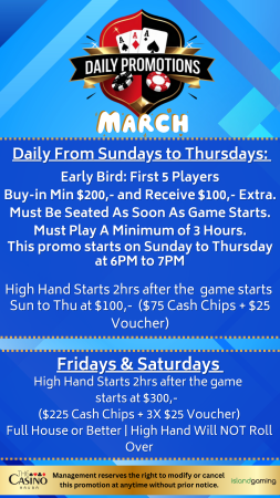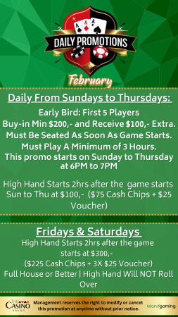 Upcoming Poker Tournaments/ Promotions at The Casino Aruba at Hilton: